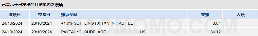 昨天查看Motion账单,发现一笔Paypal交易惨遭DCC(Dynamic currency conversion:动态货币转换)。原本10.44USD+信银1.95%手续费大概是81.12HKD+1.58HKD。结果被Paypal阴间汇率换算成84.12HKD,再挨信银1%费用一刀0.84。