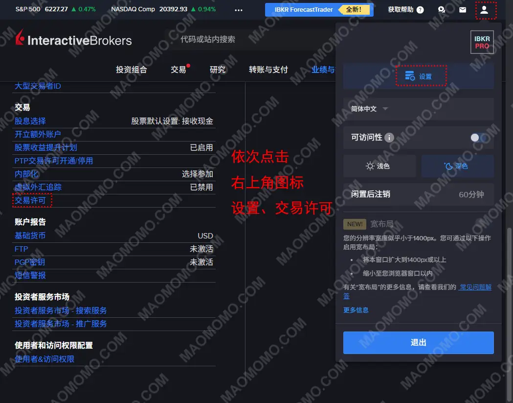 2.怎么看自己开了哪些交易许可?见下方,图3-4。