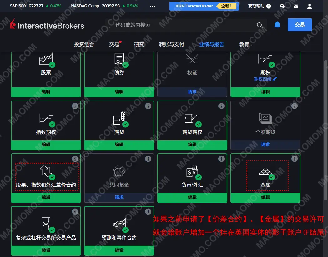之前发现自己IB账户莫名有个F结尾的影子账户(见图2),了解后才知道如果打开了【金属】、【价差合约(CFD)】等交易许可就会给你在IBUK实体下开一个影子账户,就是原有ID后加个F结尾。