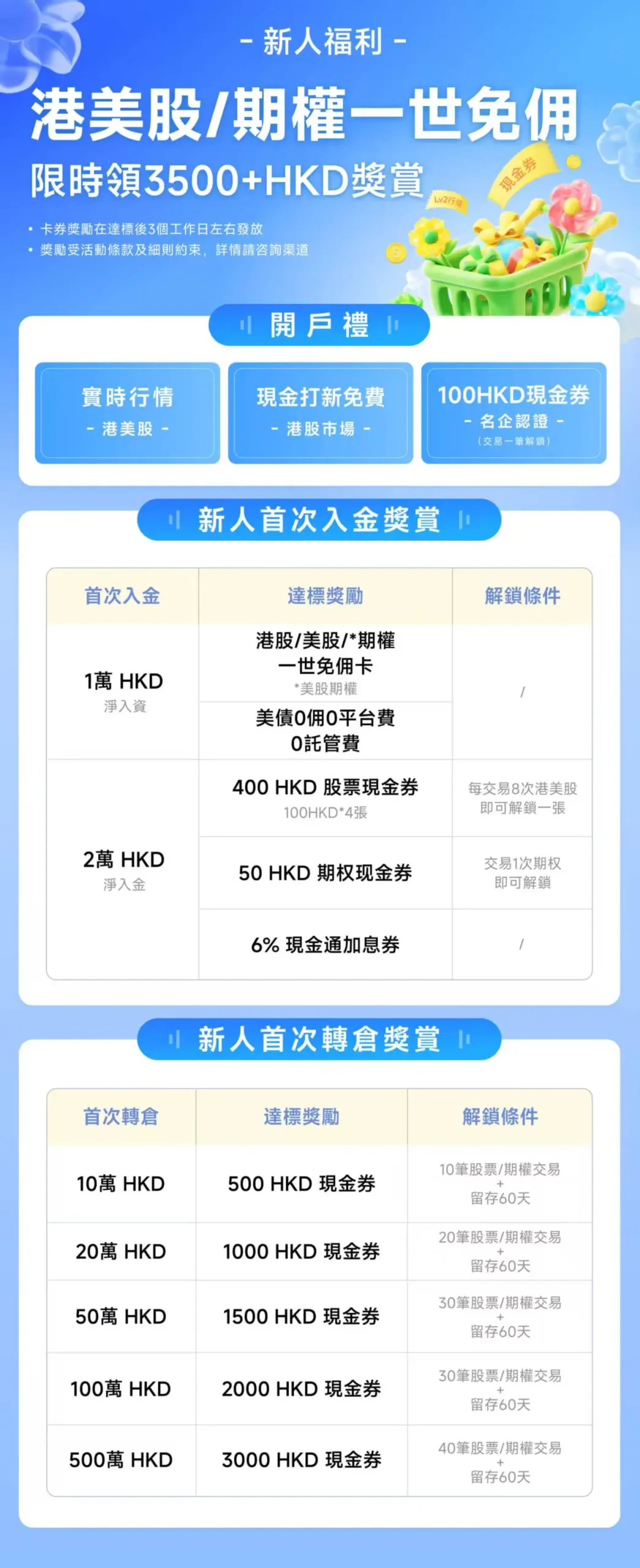 福利5️⃣:400HKD股票券(100hkd*4,每交易8次解锁一张)+50HKD期权券+6%加息券