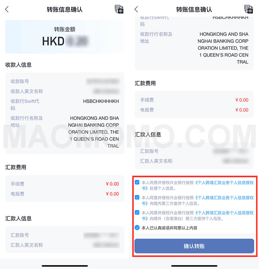 五、最后确认信息无误后点【确认转账】后等待银行审核汇出。切记,非工作时间银行是不会审核汇出的,兴业通常T+1个工作日内由市分行审核汇出。汇出后也要等收款行工作时间入账。
