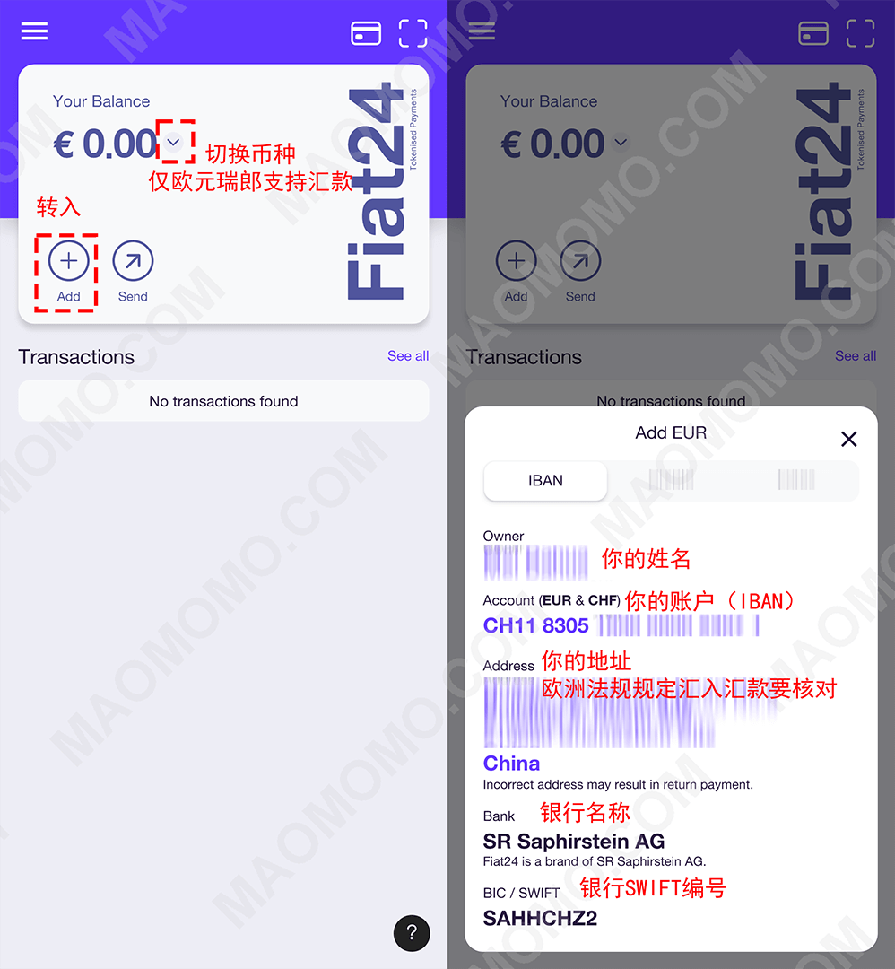 往期文章《[Fiat24]联名SavePay瑞士IBAN账户开户保姆式教程》已经详细讲解了Fiat24的开户方法,本期来讲解一下如何使用Fiat24的欧元SEPA汇款往来海妖(目前仅支持欧元或瑞郎)。