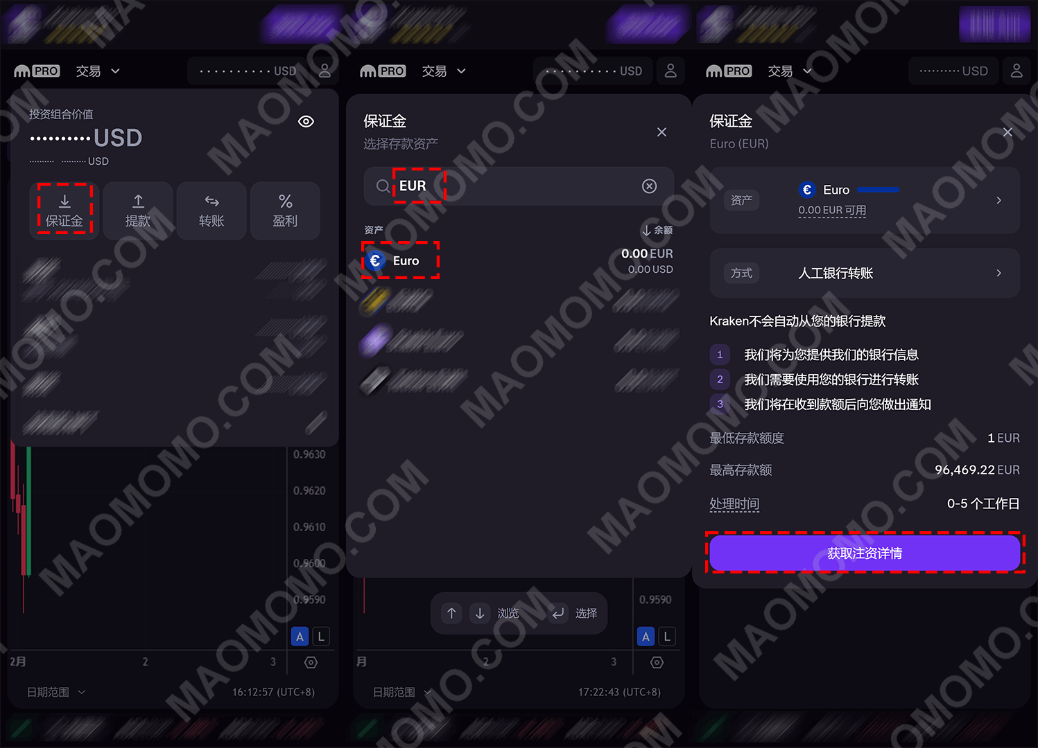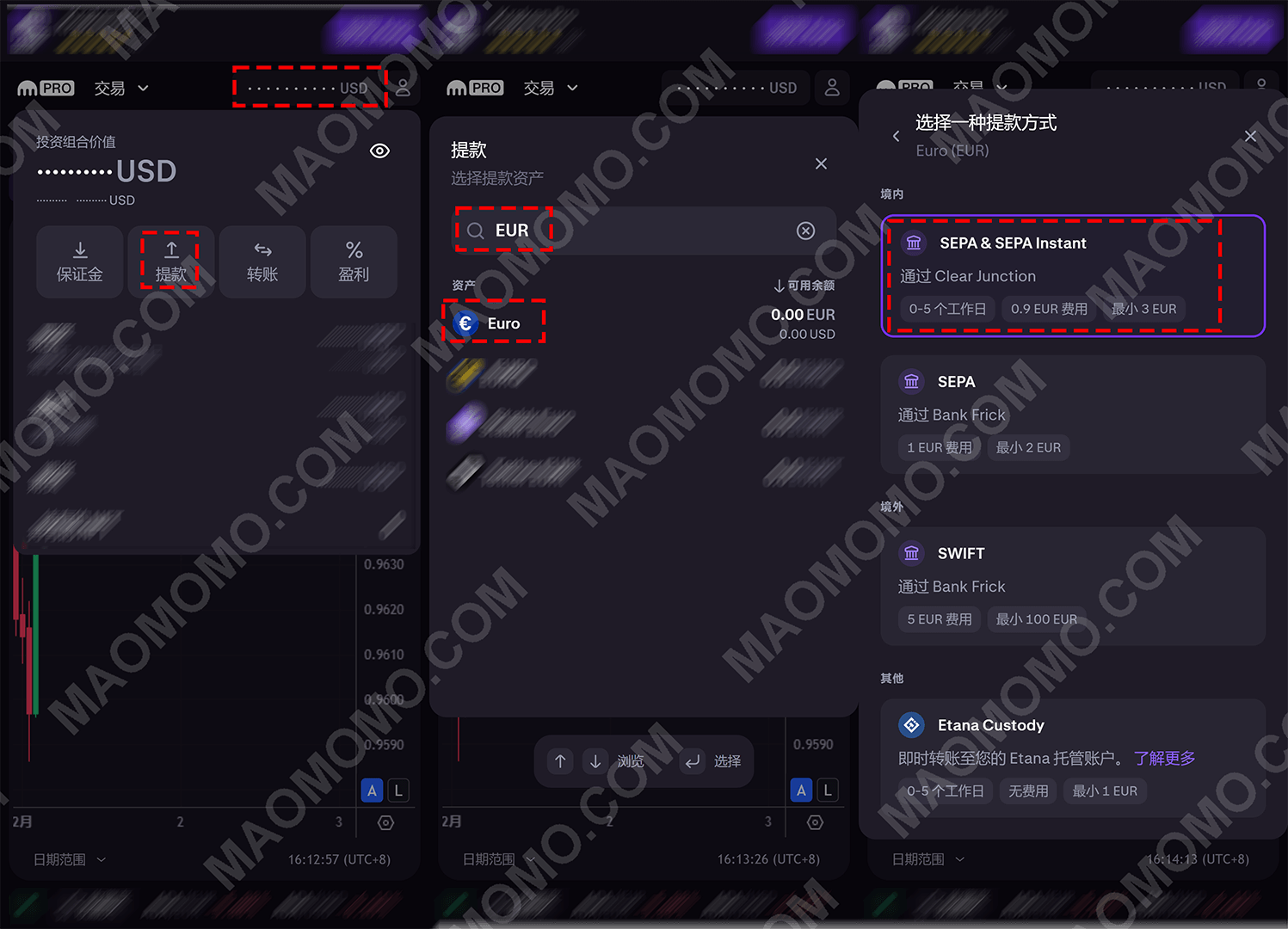 1.2.再去Kraken进入提款界面,如上图所示点击【提款】【Euro】【SEPA】