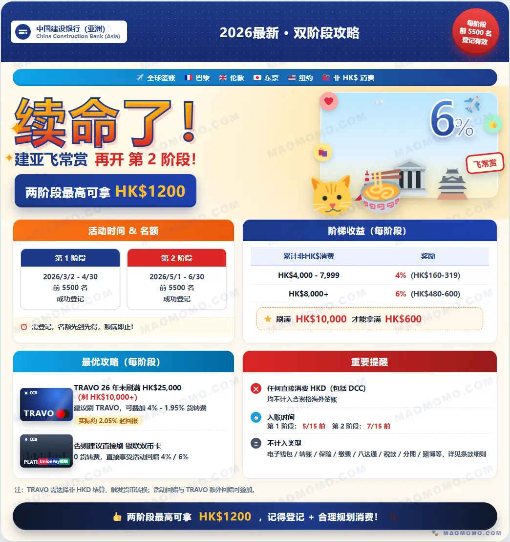 - 如果2026年5月1日之前Travo已经刷超过2.5wHKD了,就刷银联。